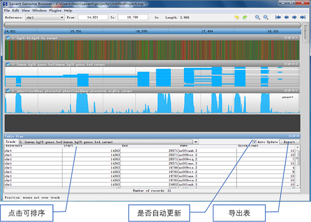每次用户要求改变范围Savant便检索和呈现数据。同时,这些过程几乎同时发生,从而在基因组实现无缝导航。每一个轨迹呈现是适应于显示模式和用户选择可视区域的长度。