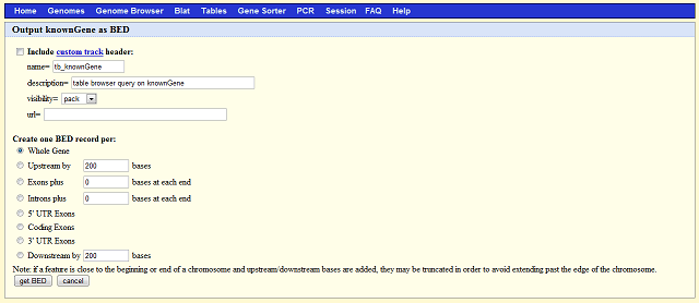 接着出现如下界面,设置BED文件的相关参数,点击get BED按钮进行下载: