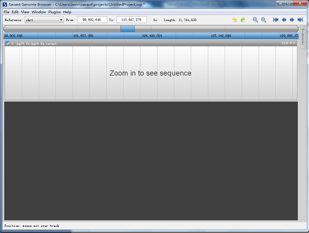 点击File->Load Genome后,点击File按钮,从一个文件中指定基因组,这里载入Fasta数据,载入基因组后界面: