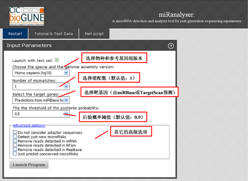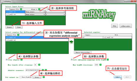 下载完成后,可以通过双击miRNAkey.jar文件运行软件,以网站提供的测试数据“Small sample-data & output”为例,软件操作如图8-1所示。