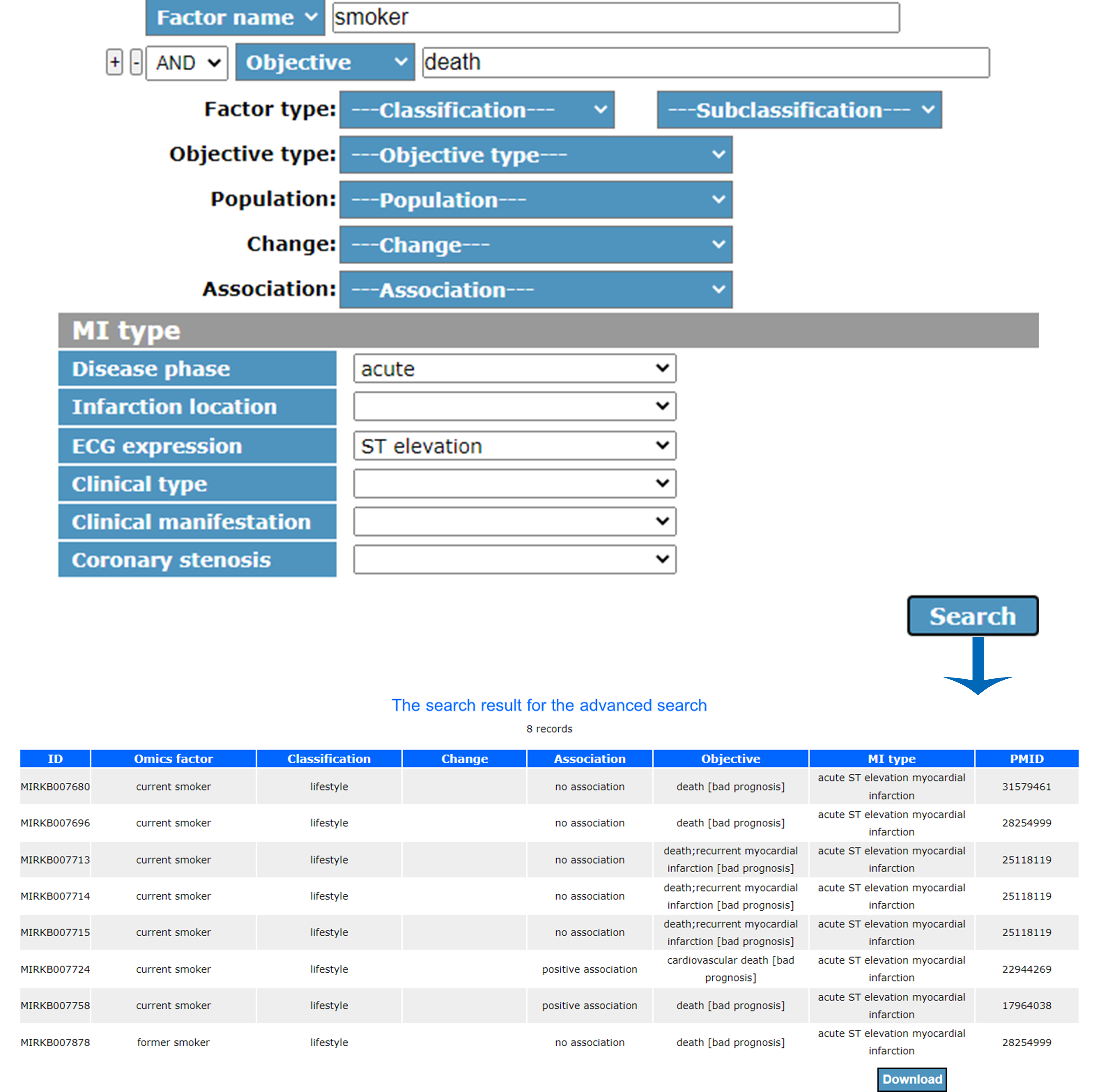 You can contribute to the project by submitting new data related to MI, which can be uploaded via the online submission form and added to the database for review through our careful review.5. Download